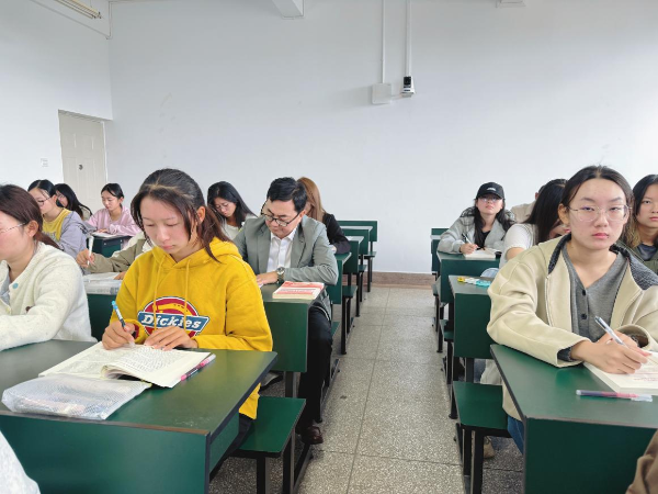 课前,邱勇听评了青年教师李玉培讲授思政课。