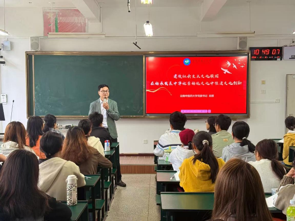 云中讯(马克思主义学院) 10月16日上午,校党委书记邱勇走进学生课堂,以“建设社会主义文化强国——在传承发展中华优秀传统文化中推进文化创新”为题,给第二临床医学院2025级康复治疗专业学生带来了一堂立意高远、内涵丰富、鼓舞人心的思想政治理论课。