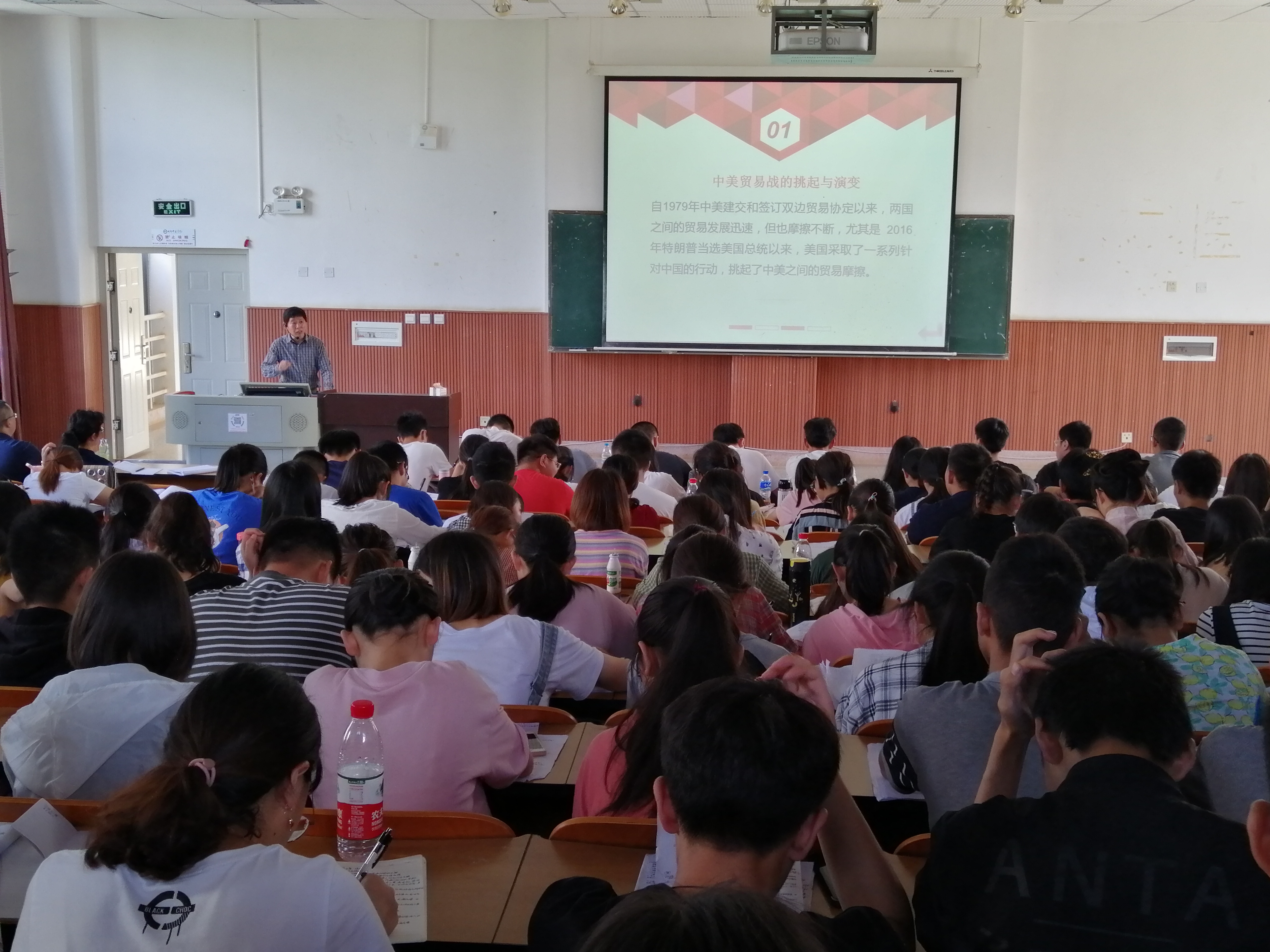 6月20日下午,校党委副书记荀传美在1203教室为基础医学院220余名学生以《从中美贸易战看世界面临百年未有之大变局》为题,讲授形势与政策专题。
