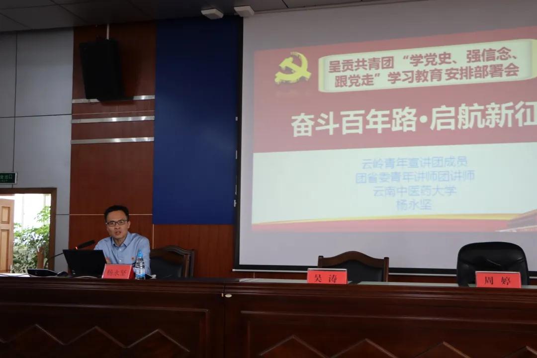 2021年是中国共产党成立100周年华诞,为引导呈贡广大团员青年厚植爱党、爱国、爱社会主义的情感,使其在党史学习中涵养忠诚坚定的政治品格,学习反躬自省的批判精神,展现迎难而上的奋斗姿态,守住务实清廉的廉洁本色,传承红色基因、革命薪火。共青团昆明市呈贡区委于2021年3月30日组织呈贡区各街道团工委及下属各社区团组织、互联网行业团总支等基层团组织80余名团员青年、团干部开展“学党史、强信念、跟党走”学习教育安排部署会暨“奋斗百年路,启航新征程”主题党史团课。