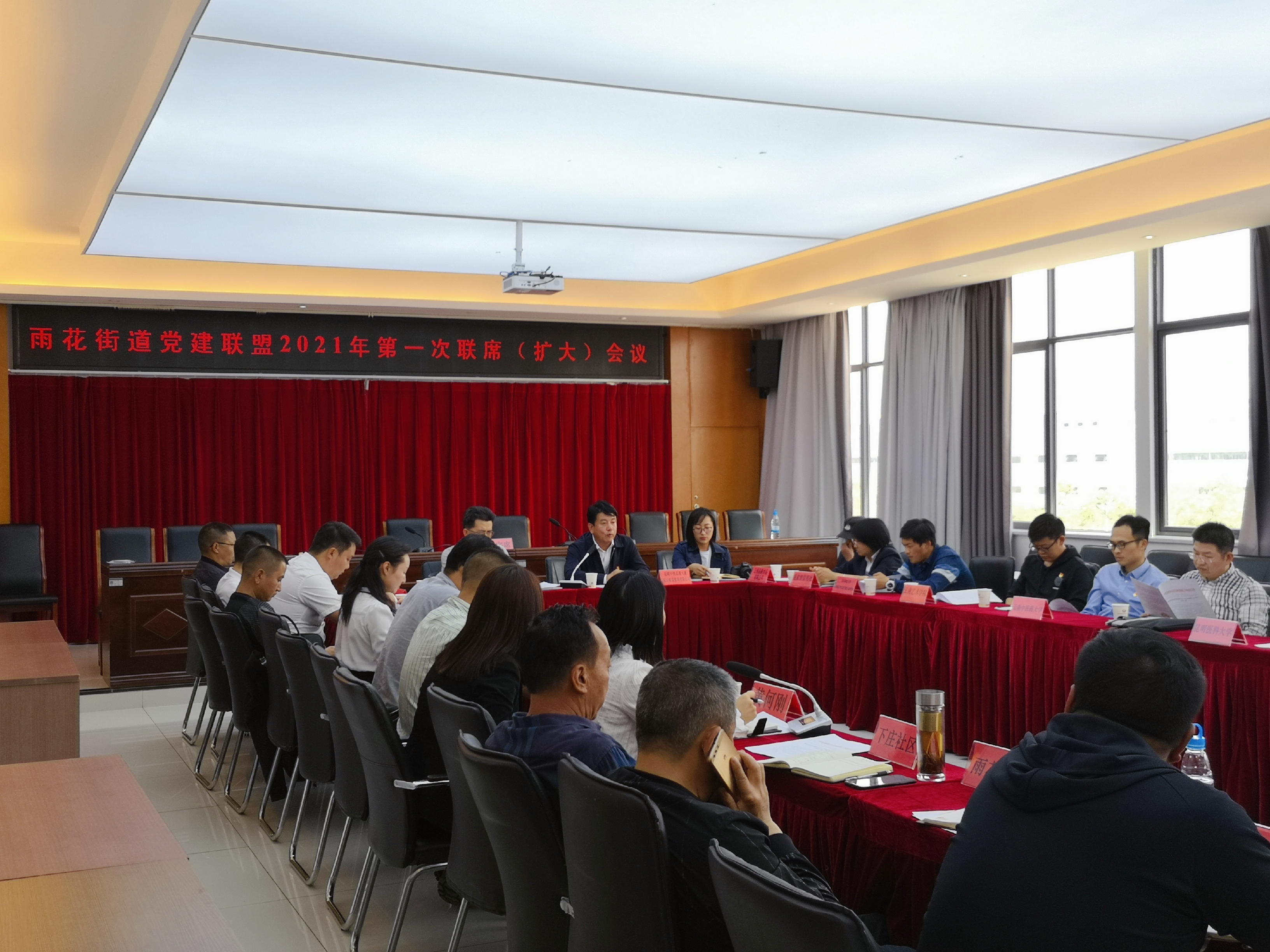 (通讯员 张丽娜)为充分发挥党建联盟作用,进一步开展好雨花街道党建联盟庆祝建党100周年系列活动,4月14日,呈贡区雨花街道党建联盟2021第一次联席(扩大)会议在雨花街道党群活动服务中心召开。党建联盟的成员单位代表参会,我校党委宣传部副部长、新闻中心主任侯宾,马克思主义学院教学科研办主任杨永坚等同志参加会议。会议由雨花街道党建联盟书记、党工委书记范文涛主持。
