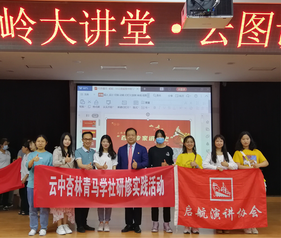 通讯员 曹淇)2021年5月16日,云岭大讲堂专题党史讲座在云南省图书馆举行。我校马克思主义学院教师、杏林青马学社学生受邀参加本次讲座。