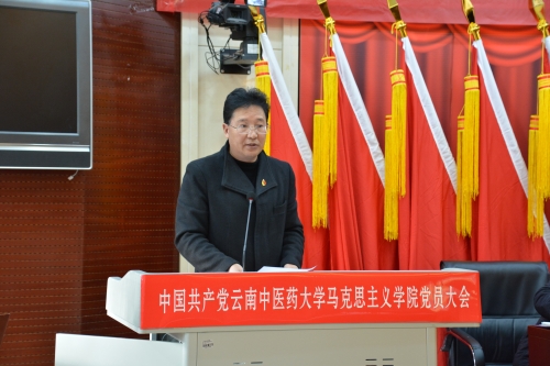 (通讯员 张丽娜)2021年11月30日下午,中国共产党云南中医药大学马克思主义学院党员大会在呈贡校区召开。学校党委副书记荀传美、组织部李正良部长出席会议,副校长、马克思主义学院党总支书记杨鹤清主持会议,学院全体党员参加大会。