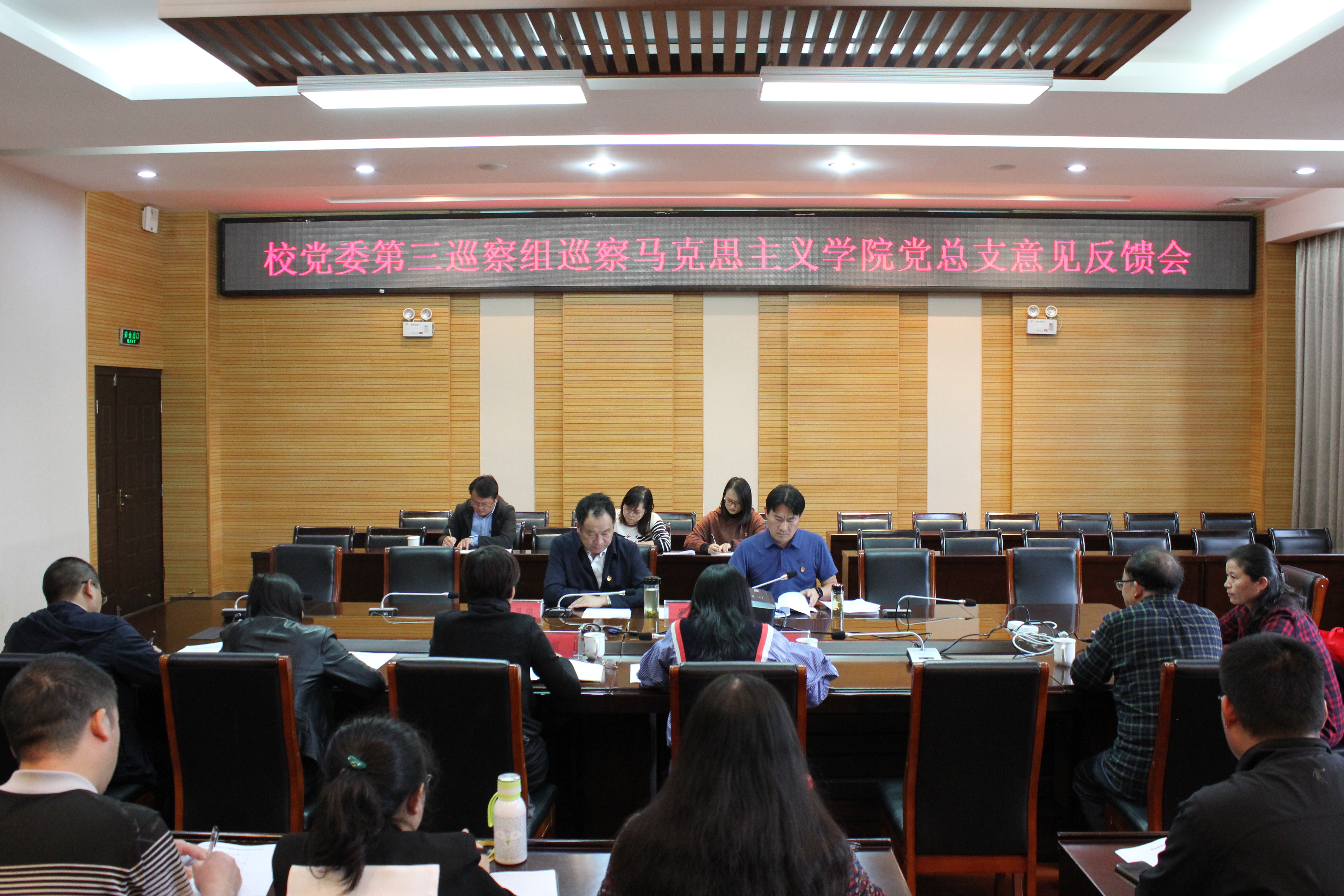 2020年10月9日,校党委第三巡察组巡察马克思主义学院党总支反馈会在崇德楼123会议室召开。校党委书记王翠岗、校党委第三巡察组全体成员、马克思主义学院全体教师参加会议。会议由马克思主义学院党总支书记、院长张丽主持。